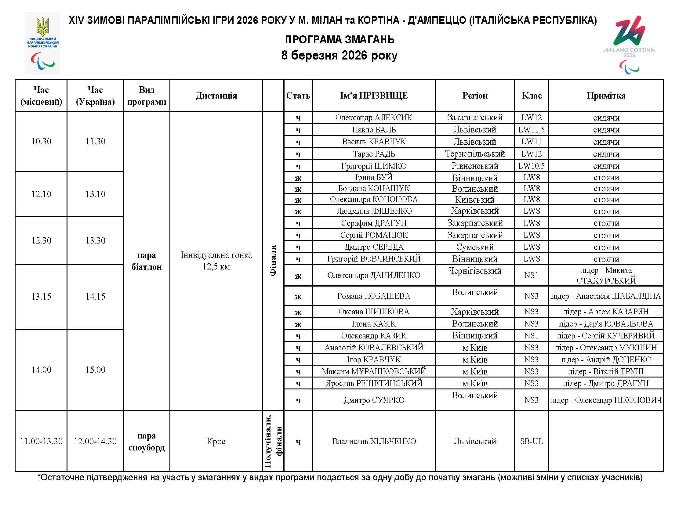 • 7 березеня, 15:06 Національна паралімпійська збірна команда України на ХIV Зимовій Паралімпіаді